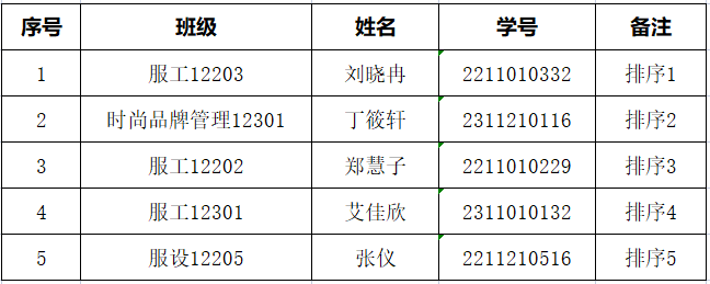 根据武汉纺织大学《关于开展2024-2025学年本科生国家奖学金评选工作的通知》有关要求和学院工作部署,经个人申报、资格审查、答辩评审、学院党委审核,拟推荐以下同学为2024-2025学年国家奖学金推荐人选: