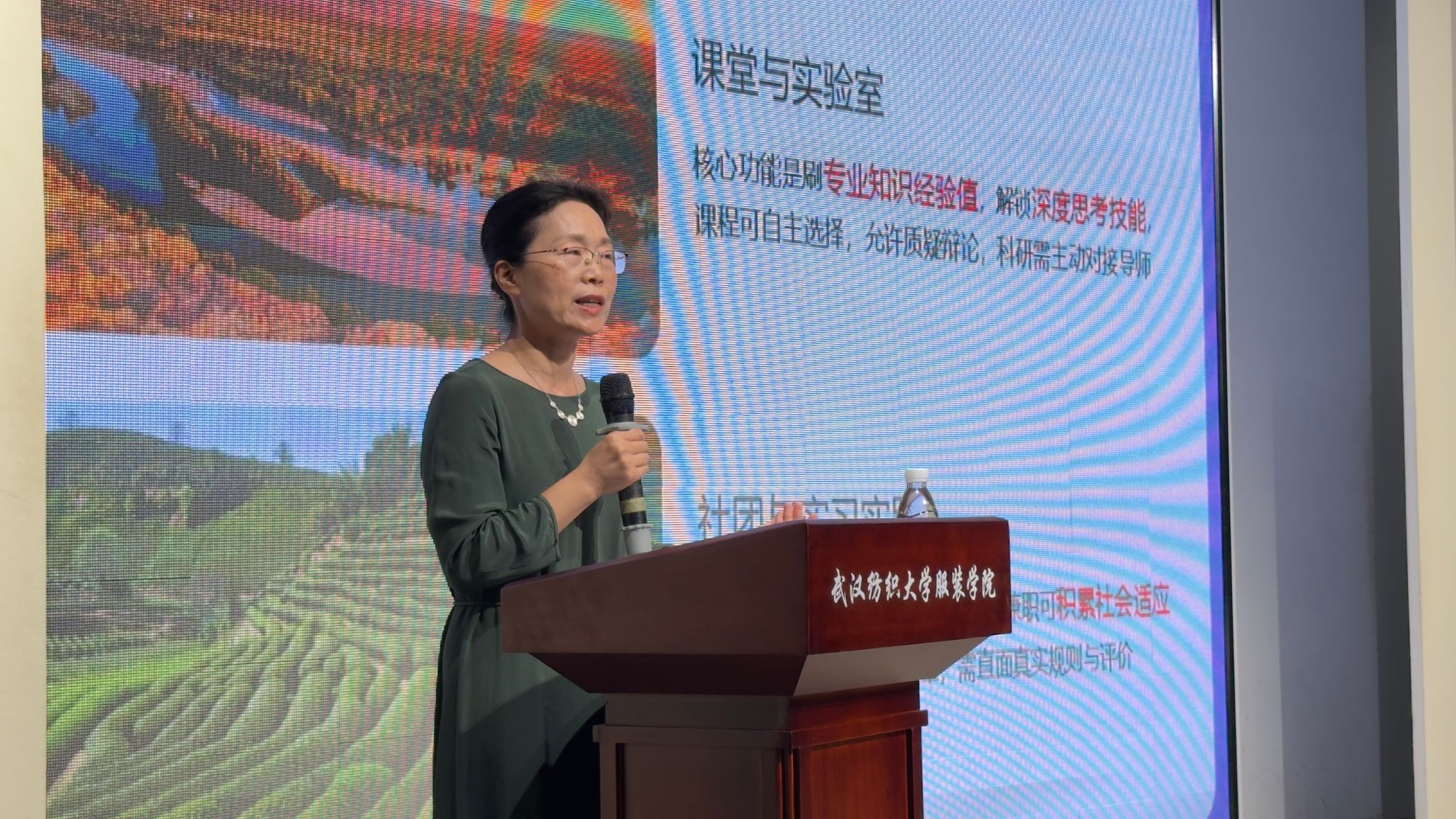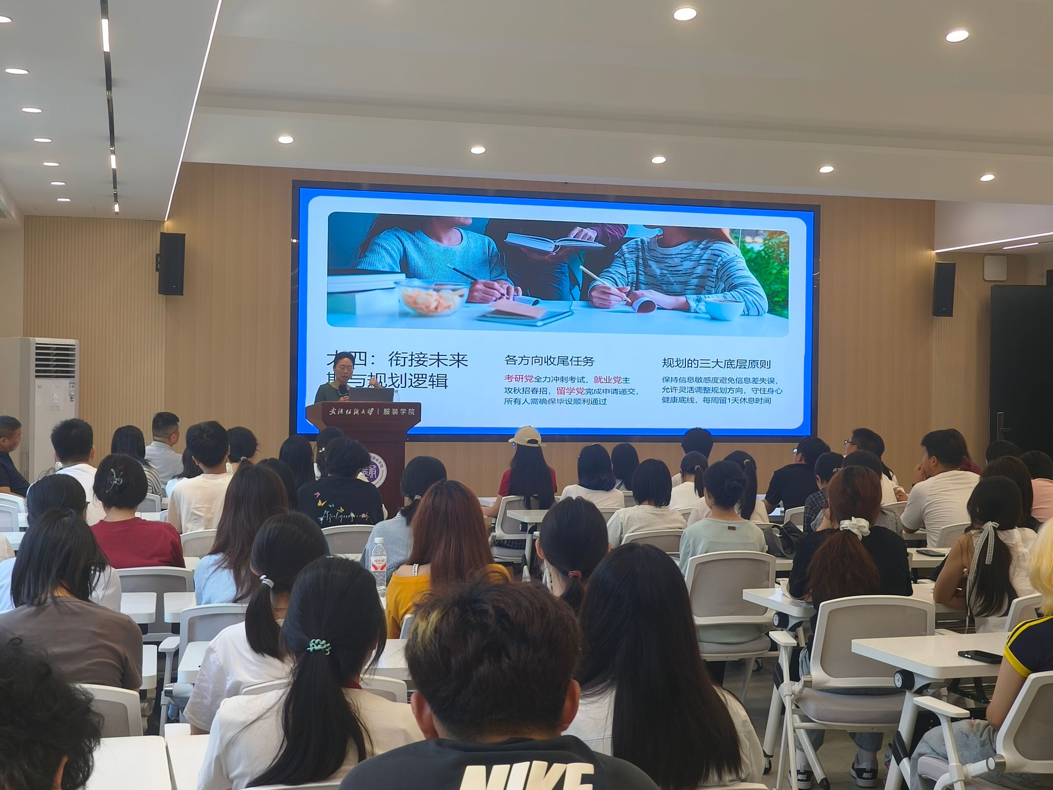秋意渐浓,初心如炬。2025年10月10日下午,武汉纺织大学服装学院院长陶辉教授在南湖表演厅、综合楼二楼学术报告厅分别给2025级新生带来了一场别开生面的“开学第一课”。在这场以“解锁大学副本,做清醒追梦人”为主题的讲座中,陶辉院长以师者情怀和育人智慧,为刚刚踏入大学校门的学子们描绘了一幅完整而生动的大学生涯图景。