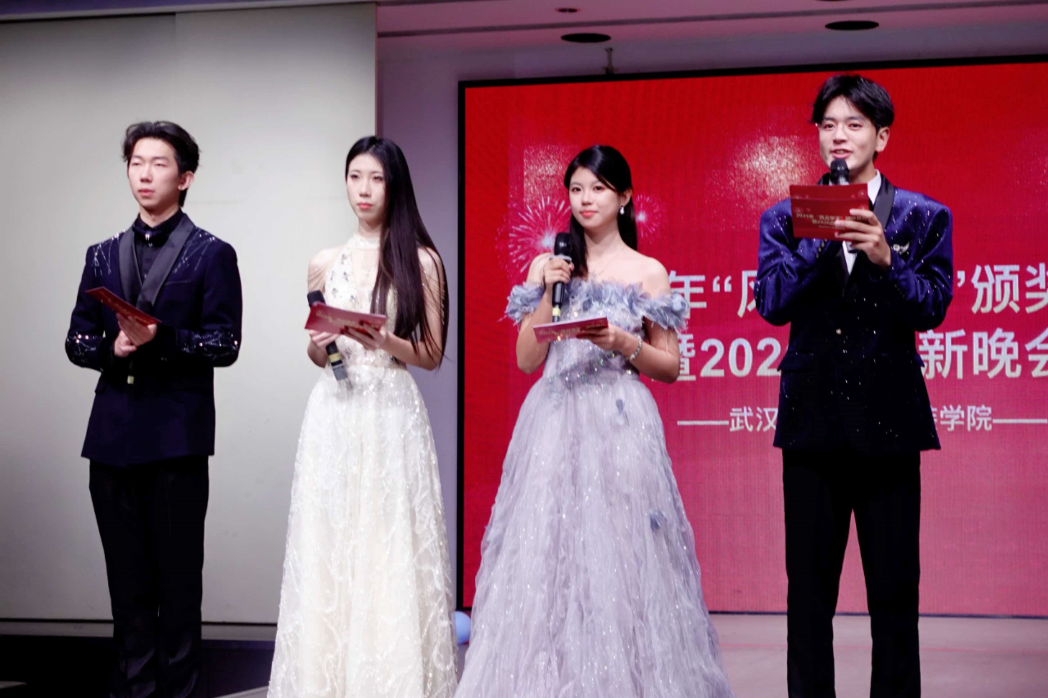 晚会现场,激昂的颁奖曲悠扬响起,亲临现场的老师为获奖学子郑重颁发荣誉证书,这份荣誉不仅见证了他们日夜伏案苦读的钻研、反复打磨的执着,更承载着学院对青年一代“守正创新、笃行致远”的殷切期许。当颁奖环节在崇敬的目光与热烈的掌声中不断推进,穿插其间的新年晚会节目轮番登场,将学子们的青春活力与创意才华展现得淋漓尽致。歌曲、舞蹈、京剧、朗诵等精彩表演一次次将现场气氛推向高潮,为这个荣耀之夜增添了无限的活力与欢笑。