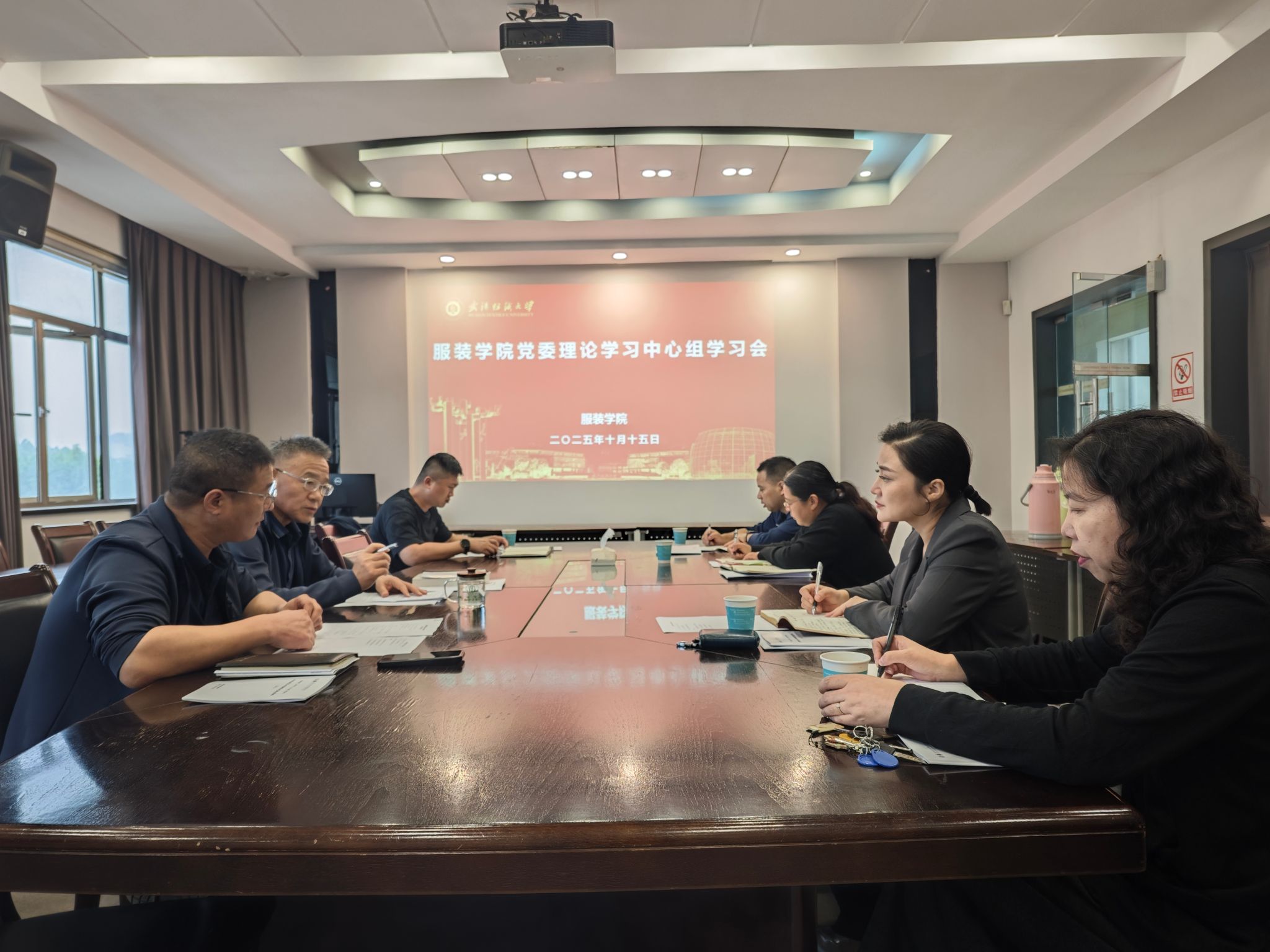 10月15日,服装学院在综合楼三楼会议室召开党委理论学习中心组学习会。学院党委全体委员参会,会议由学院党委书记杜新年主持,围绕《习近平谈治国理政》第五卷核心内容开展专题学习,同步深入贯彻中央八项规定精神学习教育,为学院高质量发展凝聚思想共识。
