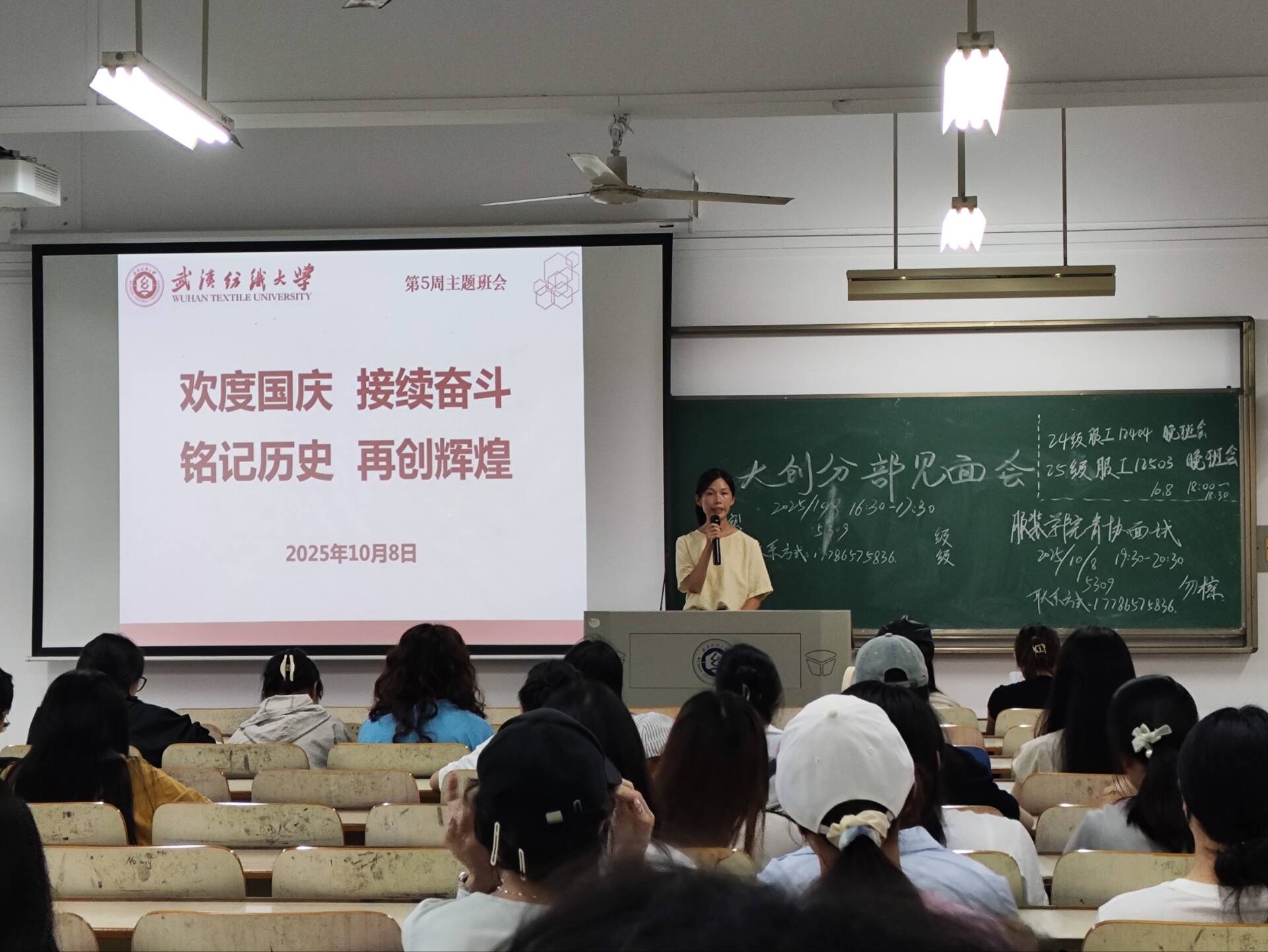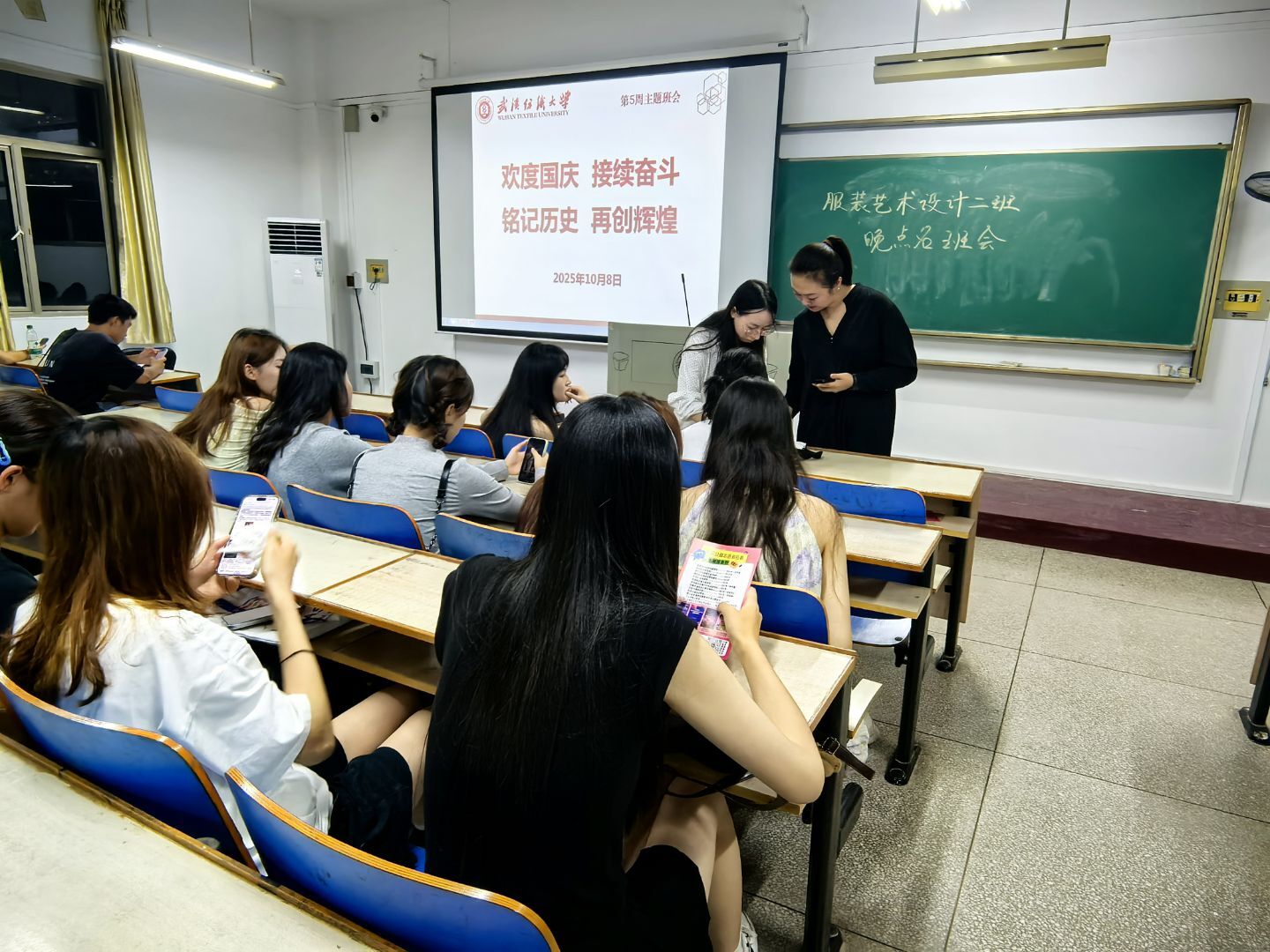 2025 年 10 月 8 日,服装学院组织各班级开展第五周主题班会,落实学校各项学习要求。班会首要任务是落实晚点名制度,辅导员、班主任逐一确认学生节后报到情况,细致核查未报到学生名单及具体事由,严格按照学院整体部署及时上报相关数据,精准掌握学生动态,保障教学秩序平稳。
