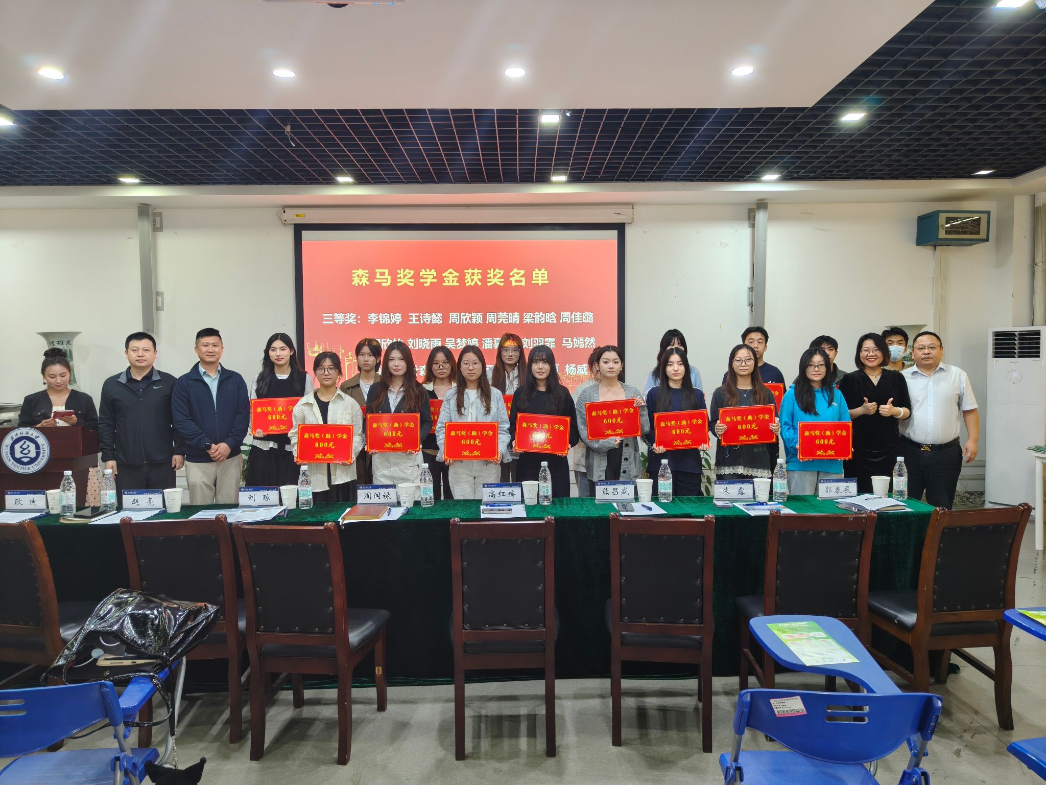 金秋时节,硕果飘香。10月14日,森马奖助学金颁奖仪式在大活304会议室隆重举行。森马股份人资中心人才招募部总监高红梅、专家刘琼,巴拉巴拉品牌事业部华中直营销售系统总监朱露,武汉纺织大学学生就业指导处处长周闰禄、副处长熊昌盛及各学院党委副书记等领导嘉宾出席活动,全体获奖学生、各学院学生代表共同见证这一重要时刻。