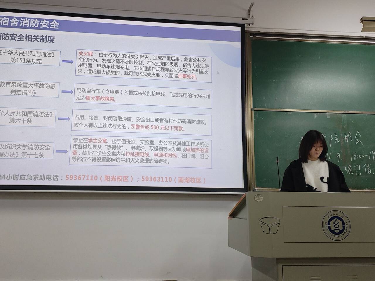 本周晚班会聚焦消防安全教育,各班通过专题讲解、案例剖析、互动交流等形式,组织学生系统学习消防安全相关法律法规,结合阳光校区一寝室火灾真实警示案例,深入分析火灾成因与危害,引导学生深刻汲取教训;同时,细致解读宿舍消防安全“十戒”具体要求,明确禁止使用大功率电器、私拉乱接电线等红线。各年级也具体通报了10月份院公检不合格寝室,辅导员、班主任现场重申整改标准,督促寝室长牵头对照宿舍管理细则逐项自查自纠,确保当日整改到位。