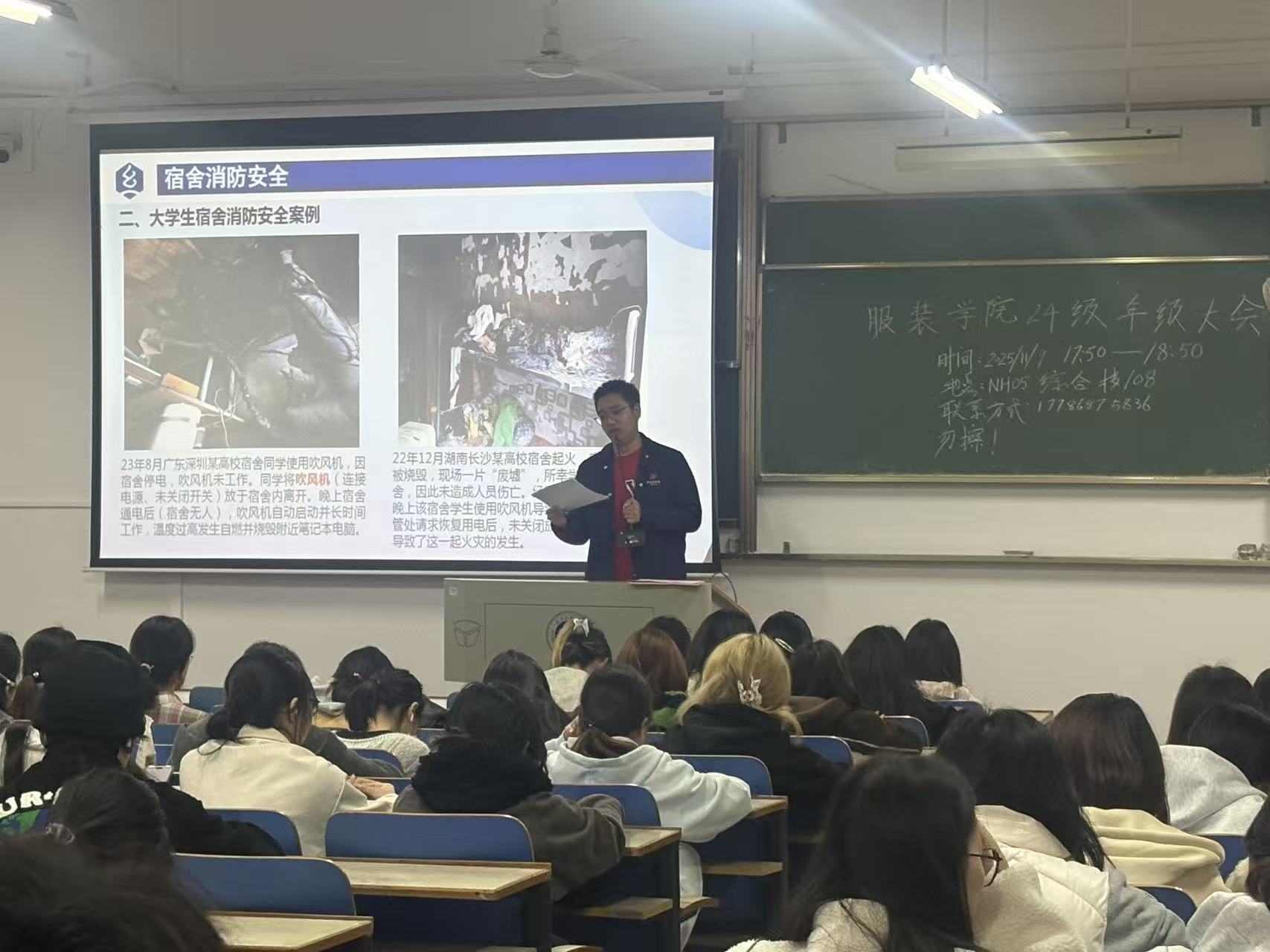 2025年11月9日,为切实强化学生安全意识,规范日常管理,保障校园安全稳定,服装学院各班级同步召开“筑牢安全防线 守护校园平安”主题班会,围绕学生报到核对、消防安全教育、奖助政策宣讲、宿舍卫生建设四大核心任务,全面落实学院工作部署,为学生营造安全、有序、整洁的校园生活环境。