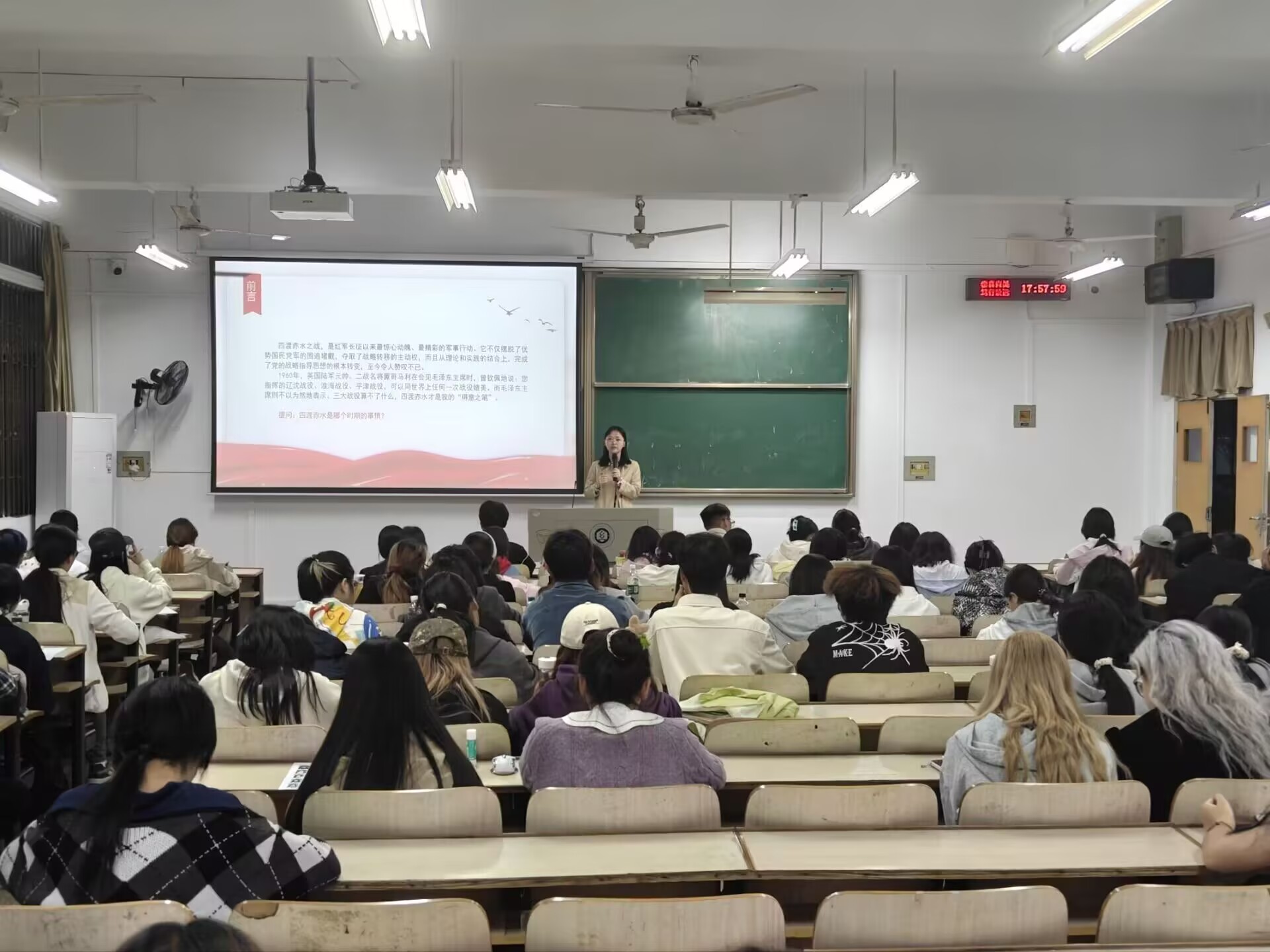 10月13日团课第四讲在5109教室举行,本次团课由周曦老师主讲。她以“红军四渡赤水之战”为主题,详细介绍了战役的起因、经过与结果,深化了同学们的认知,让大家深入了解革命先辈的智慧、勇气与信念。通过视频展示,同学们更加直观地了解了四渡赤水的经过,学习了革命先辈的爱国情怀与战略思维,也对长征中这场著名的以少胜多战役有了深刻认识。周老师希望同学们能借此学习历史思维的重要性,坚定理想信念、培养求真务实的学习态度;同时,她结合身边事例,告诉同学们永不言弃、不断增强本领的重要性。最后,她寄语大家在传承红色精神的同时,坚定理想信念、勇往直前。先辈们以鲜血铸就和平,我们更应不负所望,书写青春华章。