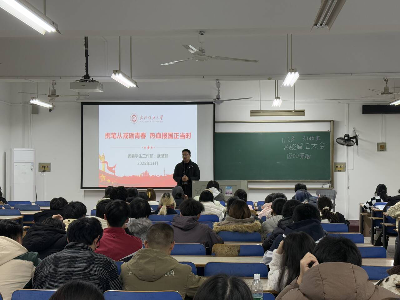 为积极响应国家征兵号召,鼓励大学生投身国防事业,11月23日,服装学院各年级辅导员围绕“携笔从戎砺青春,热血报国正当时”主题,组织开展了2026年春季征兵政策宣讲主题班会,营造了浓厚的参军报国校园氛围。